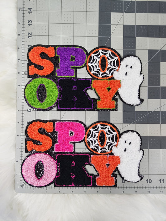 Large Spooky Ghost with Black Glitter Iron On Patch