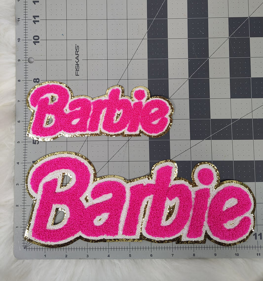 Barb ie Chenille with Gold Glitter Iron On Patch