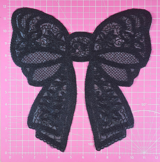 Lace Bow Doily Black Large Iron On Patch