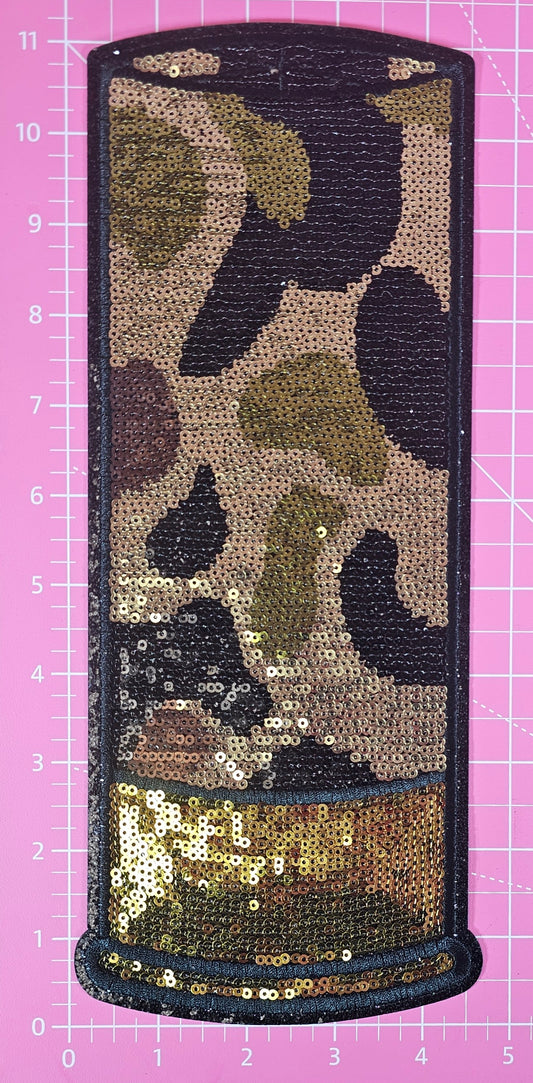 Shotgun Shell Camo Hunt Sequin Glitter Large Iron-on Patch
