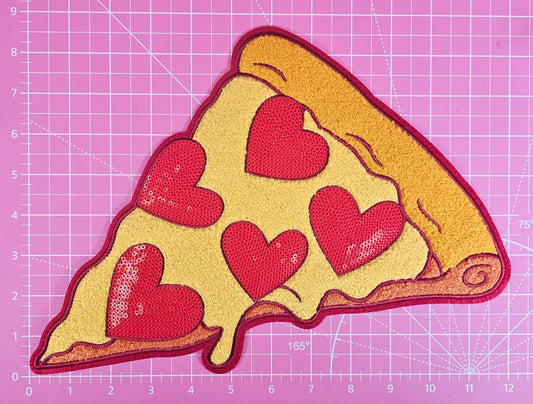 Pizza Slice Hearts Sequin Glitter Large Iron-on Patch