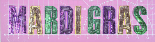 Mardi Gras Letter Sequin Iron On Patch Set