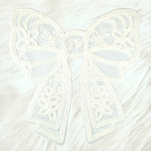 Lace Bow Doily White Large Iron On Patch