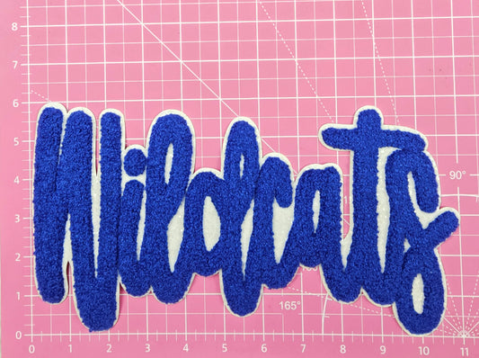 DEFECT Large Wildcats Cursive Chenille on White Glitter Iron On Patch