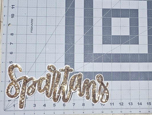 Spartans MSU Cursive Gold Sequin Large Iron On Patch