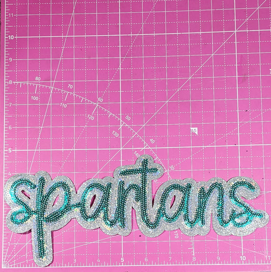 Spartans Cursive Green Sequin Large Iron On Patch