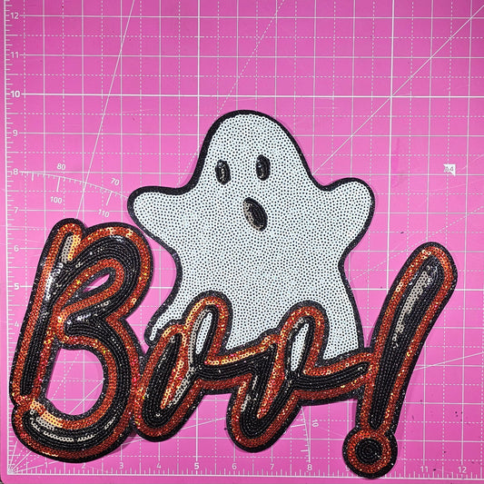 Boo! Ghost Sequin Glitter Large Iron on Patch