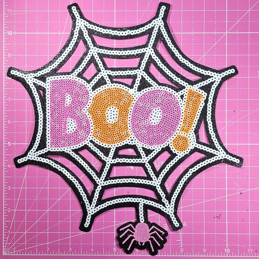 Boo! Spider Web Sequin Glitter Large Iron on Patch