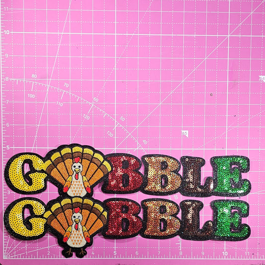 Gobble Gobble Turkey Sequin on Glitter Large Iron on Patch