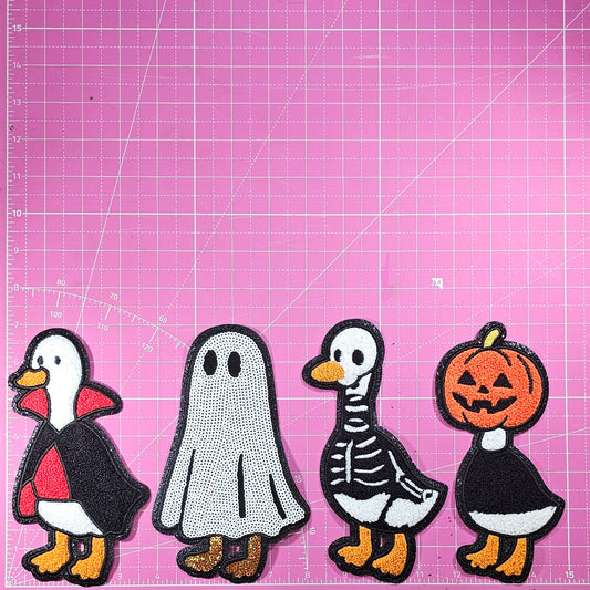 Spooky Goose Halloween 4 PC Chenille Sequin Glitter Large Iron on Patch