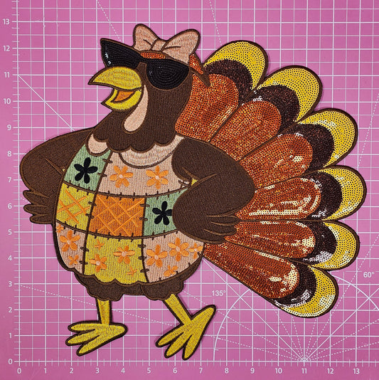 Thanksgiving Turkey Sunglasses Patchwork Quilt Large Iron on Patch