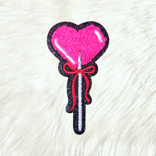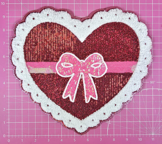 Heart Sucker Valentines Bow Chenille Iron On Patch