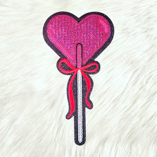 Heart Sucker Valentines Bow Sequin Iron On Patch