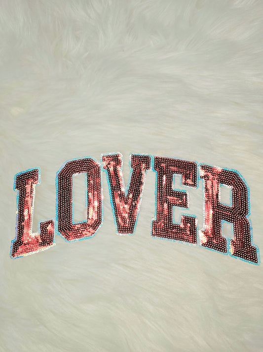LOVER Pink or Red Sequin Iron On Patch