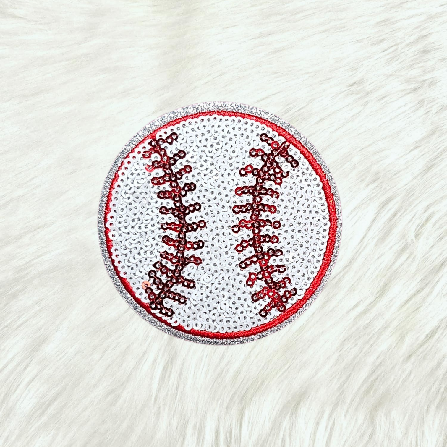 Baseball Sequin Silver Glitter Small Iron On Patch