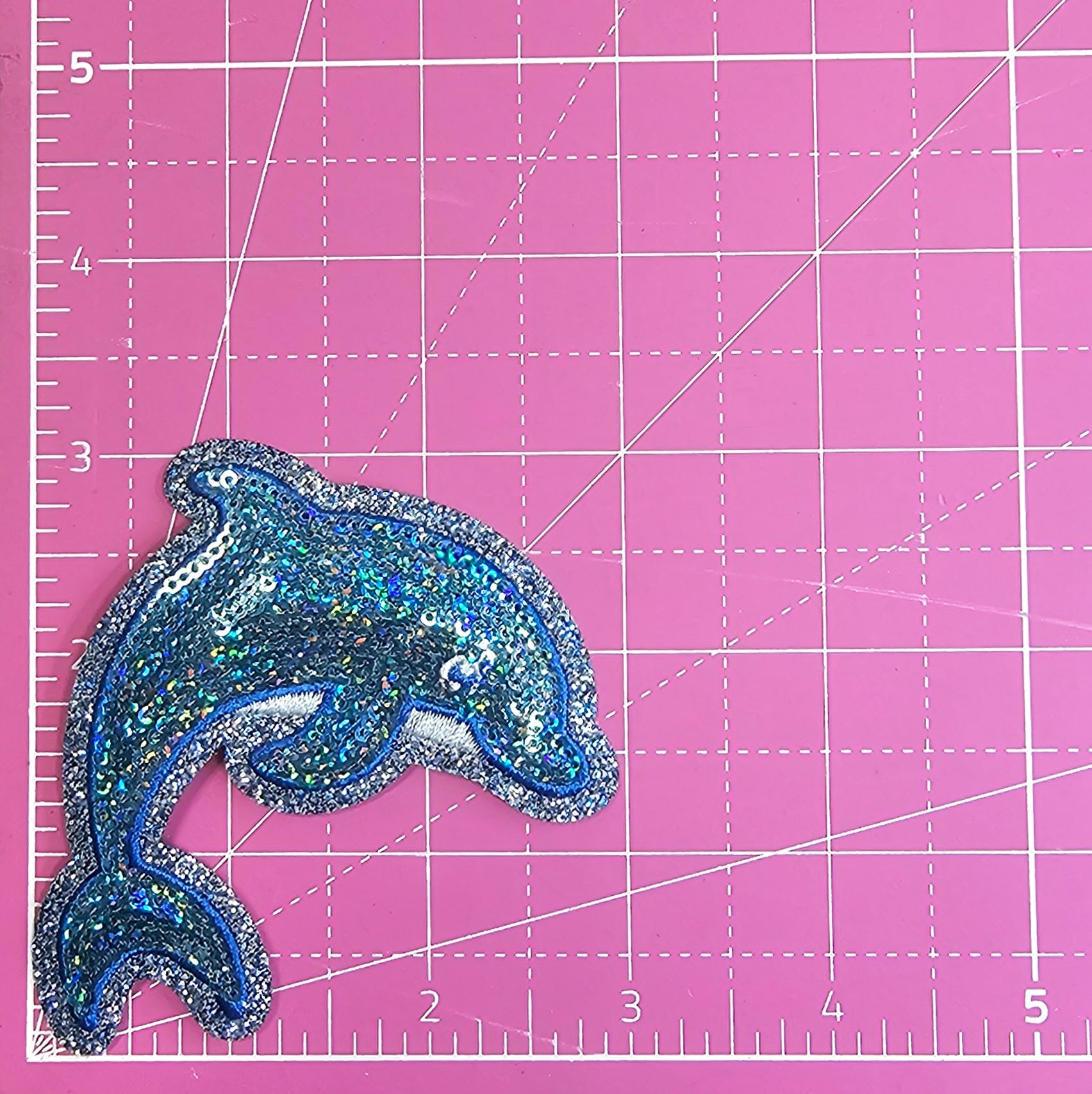 Dolphin Sequin Blue Glitter Iron On Patch