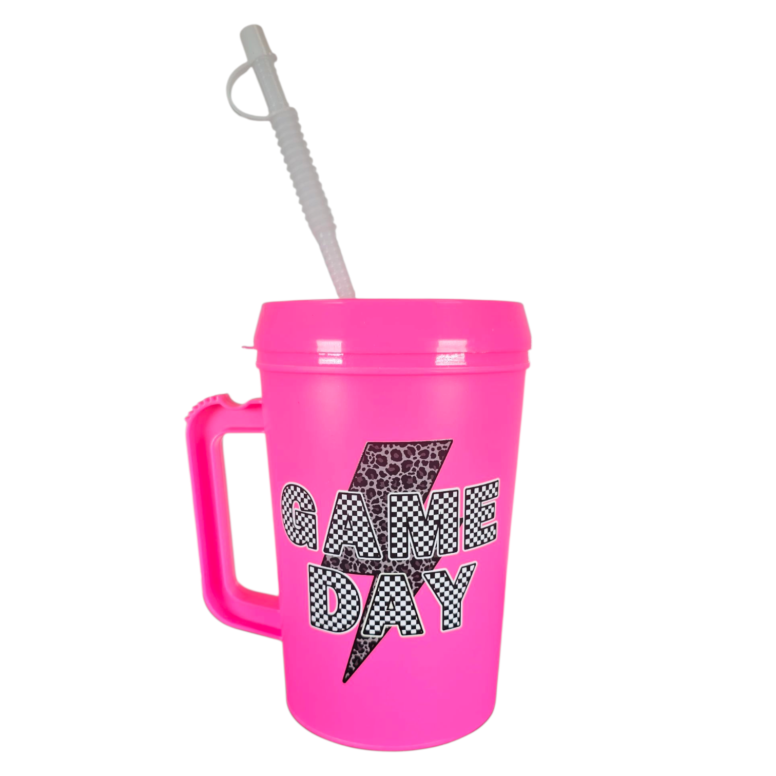 Game Day Checker Cheetah Lightning Bolt HIP SIPS Mega Trucker Mug 34oz