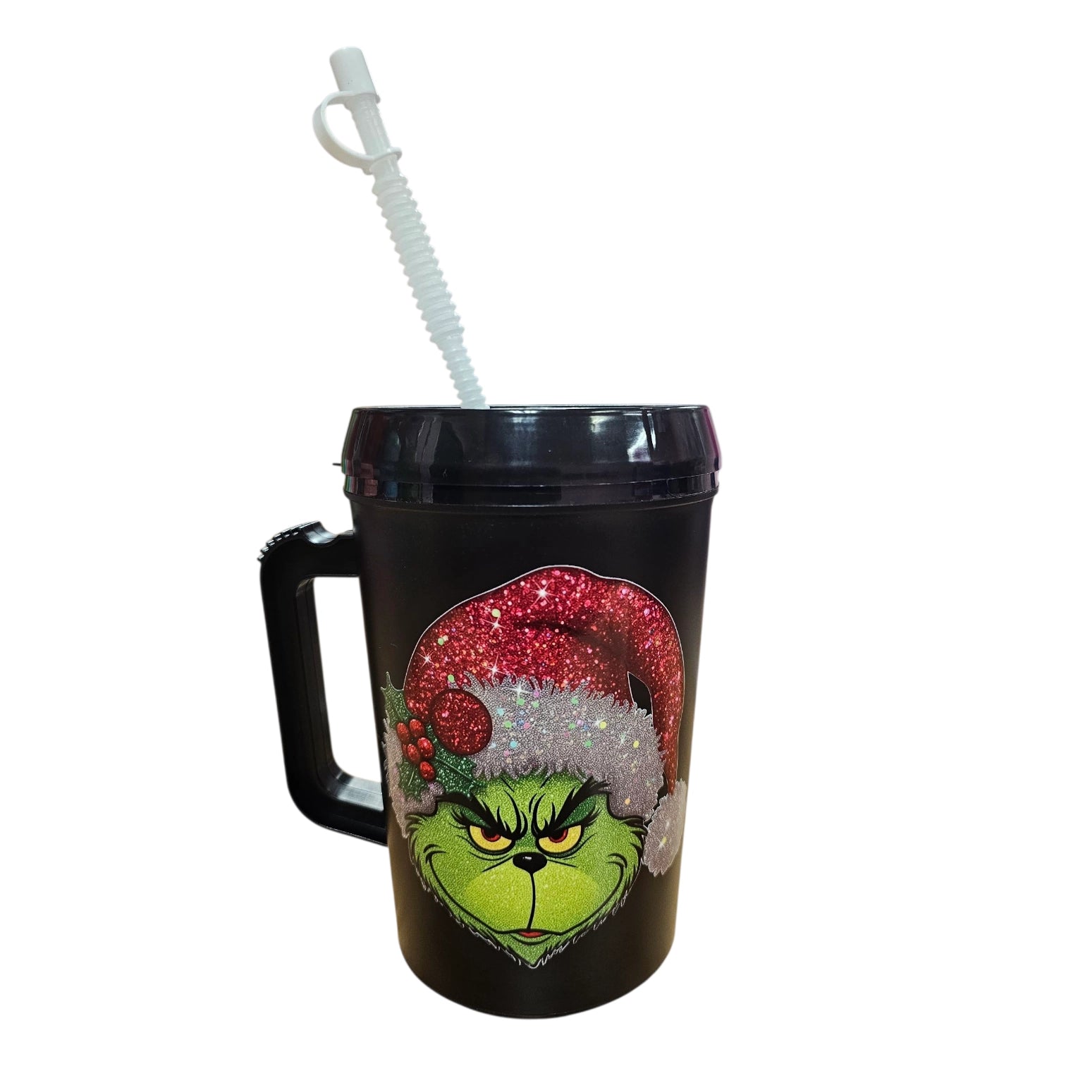 Glitter Grinchy Santa Hat Christmas HIP SIPS Mega Trucker Mug 34oz