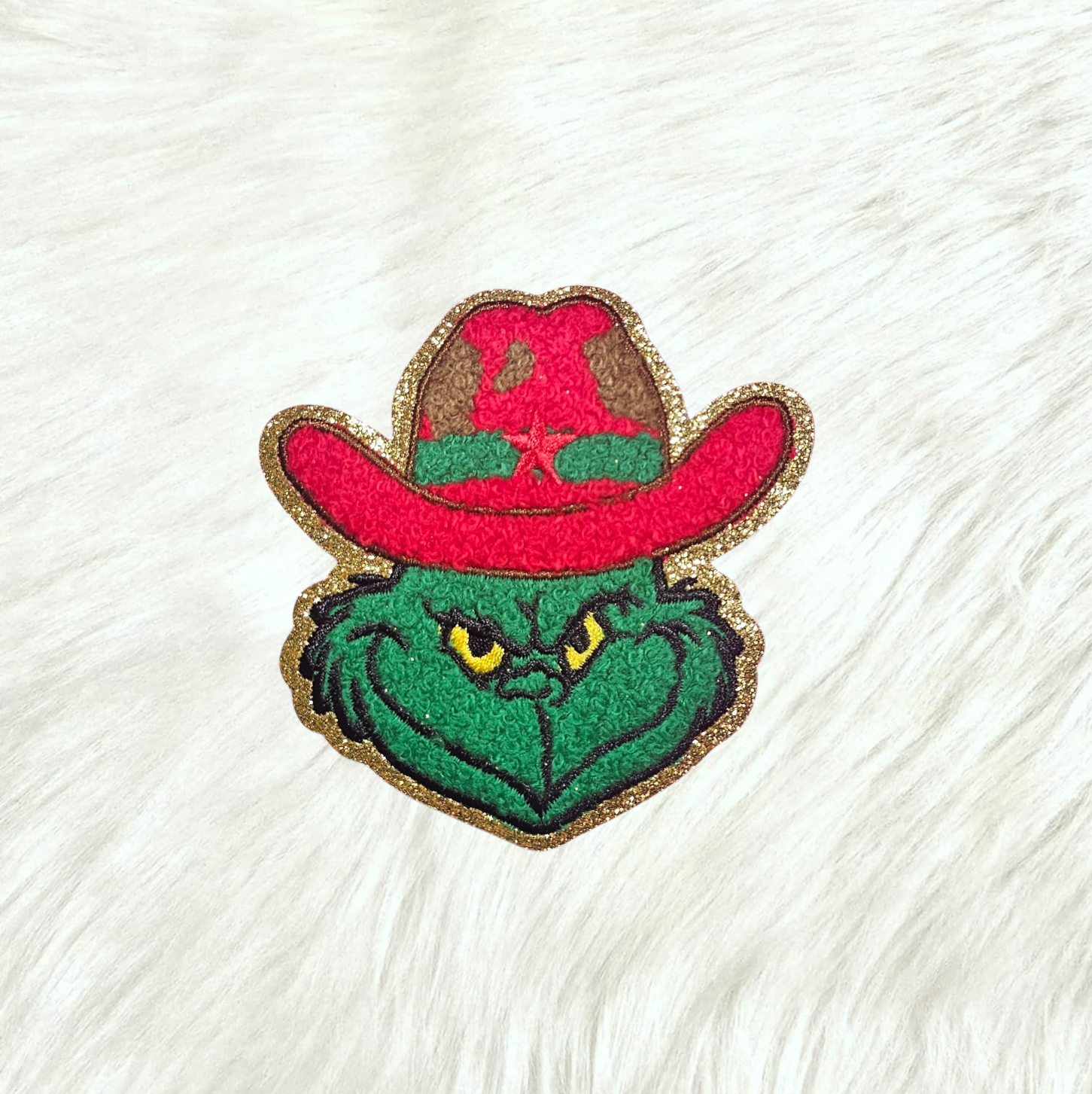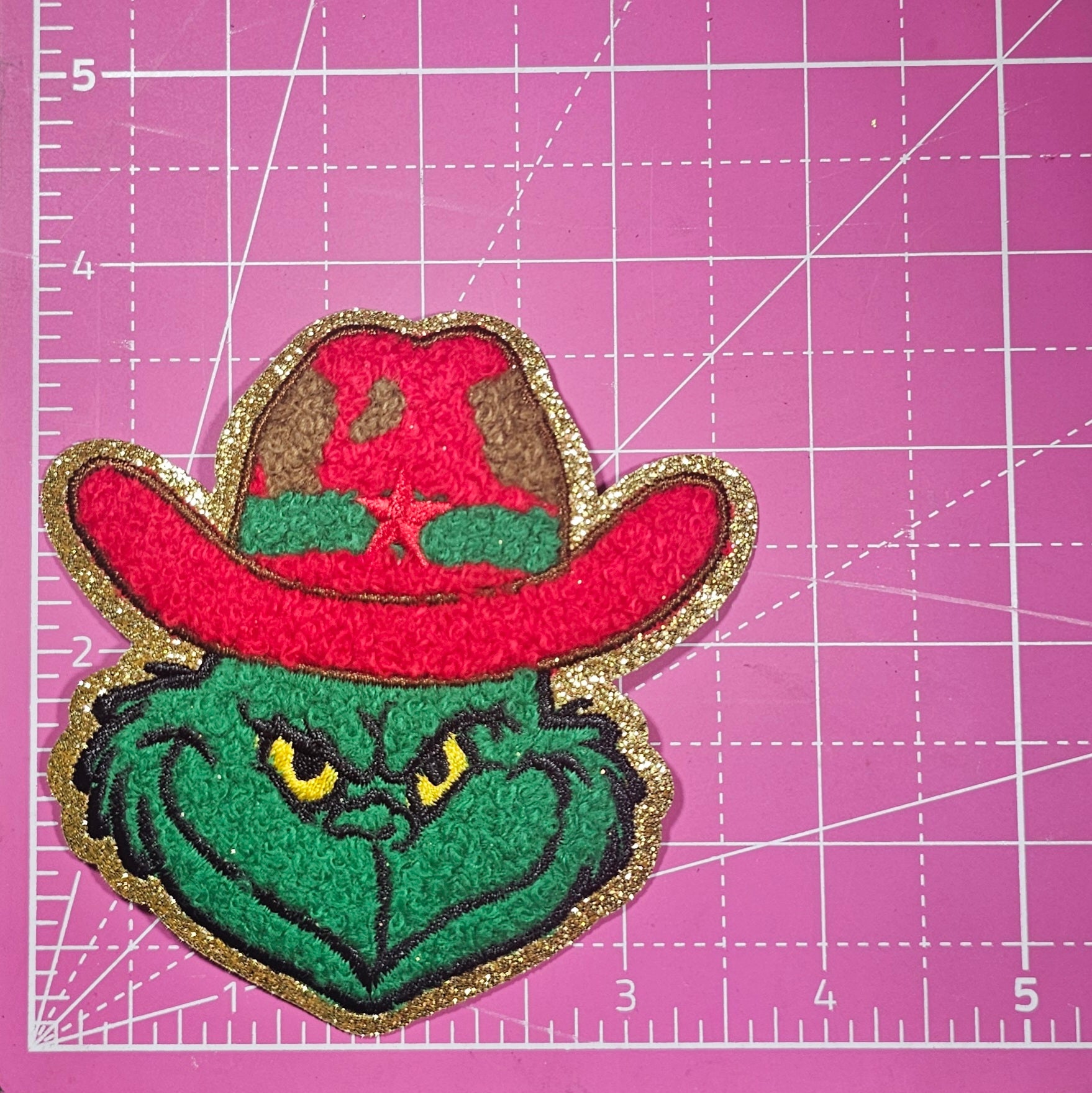 Grinchy Rodeo Western Red Hat Chenille Embrioidery Iron On Patch