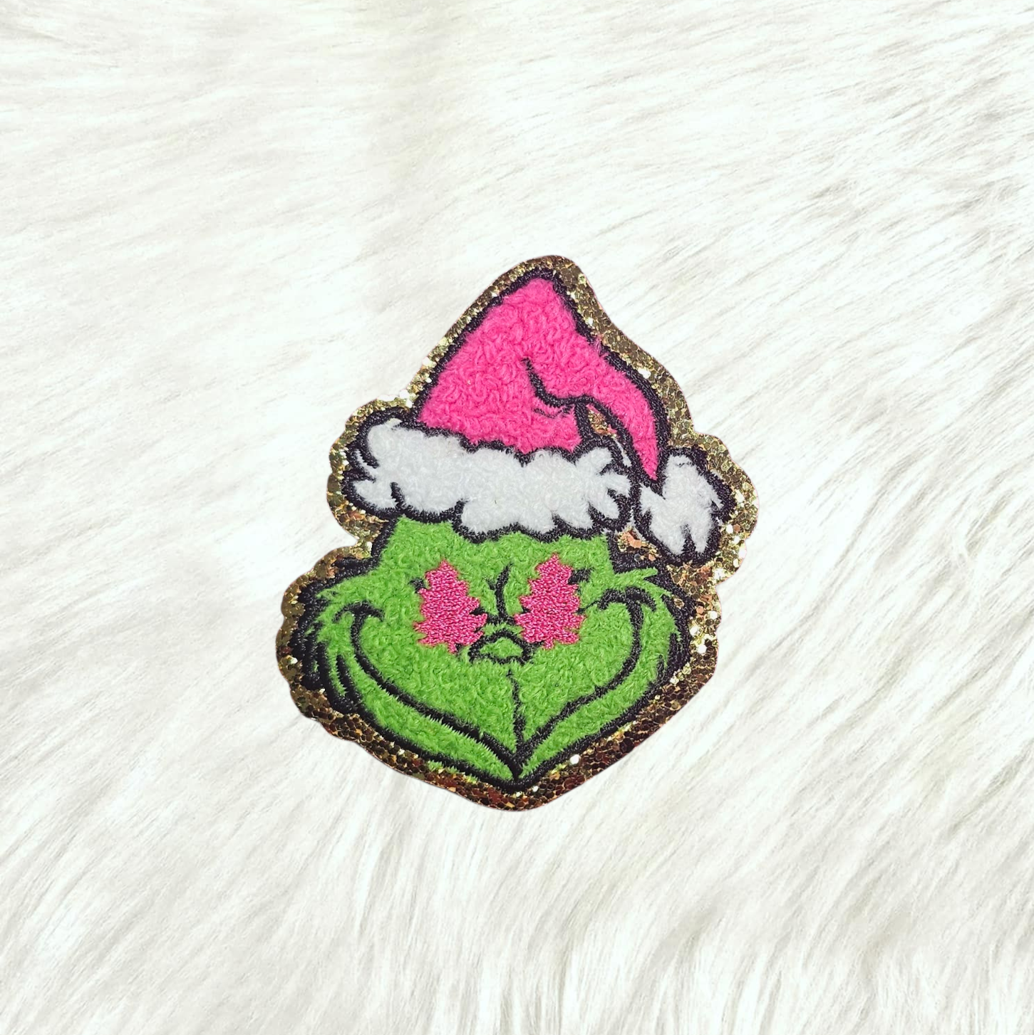 Grinchy Tree Eyes Pink Hat Chenille Embroidery Iron On Patch