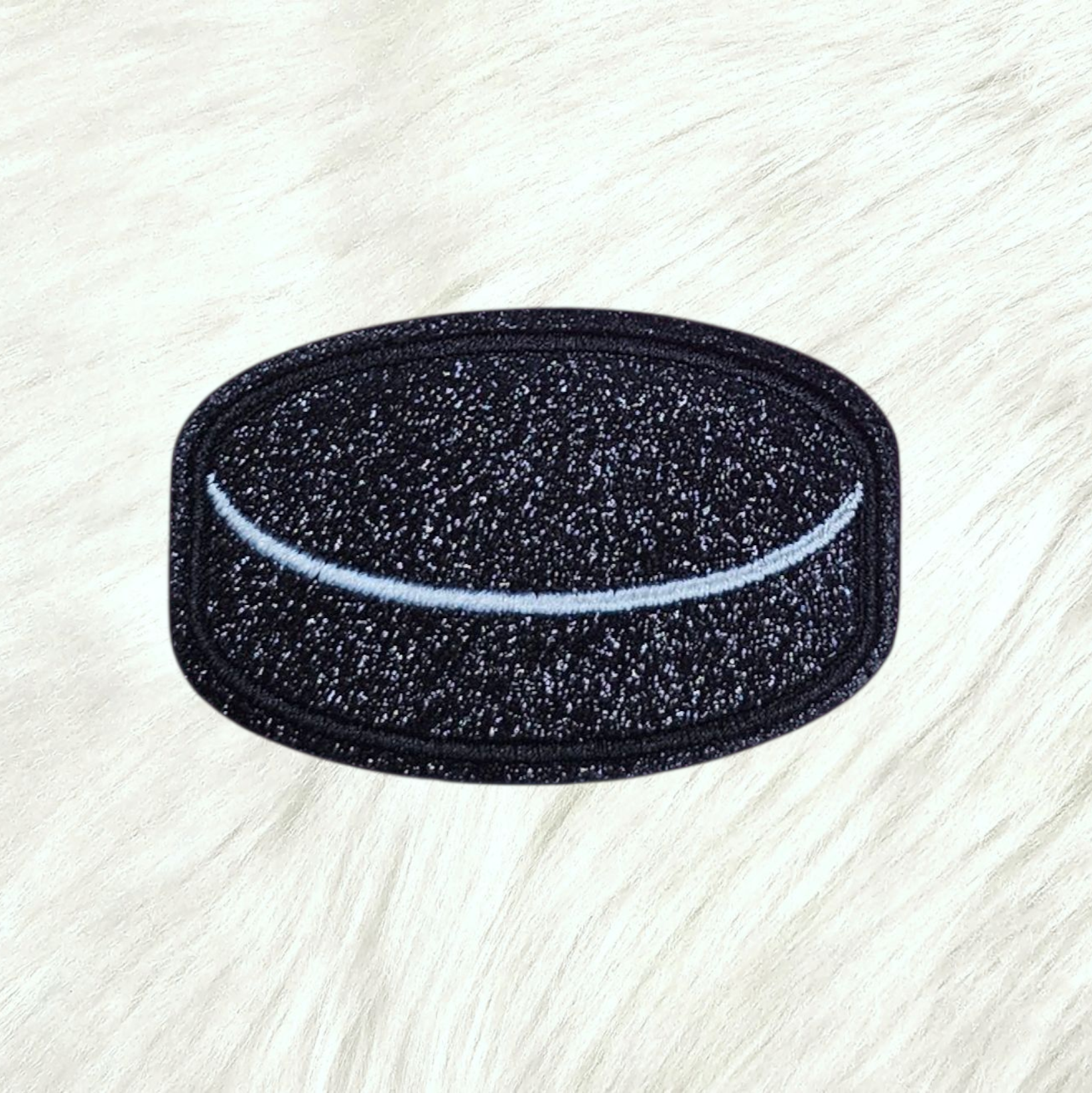 Hockey Puck Black Glitter Embroidery Iron On Patch