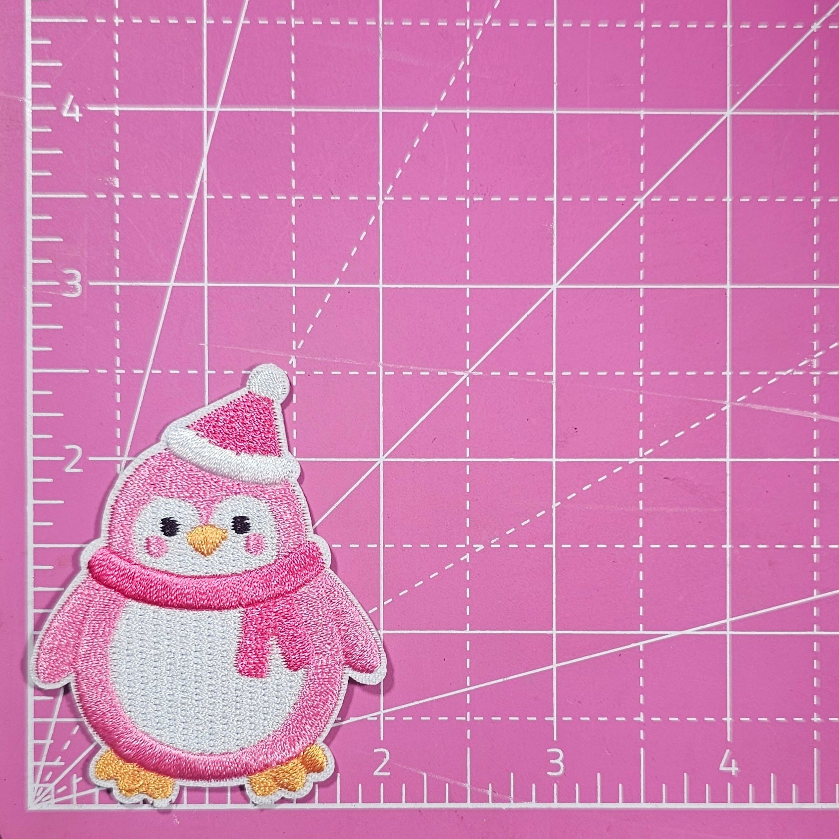 Penguin Pink Hat and Scarf Embroidery Iron On Patch