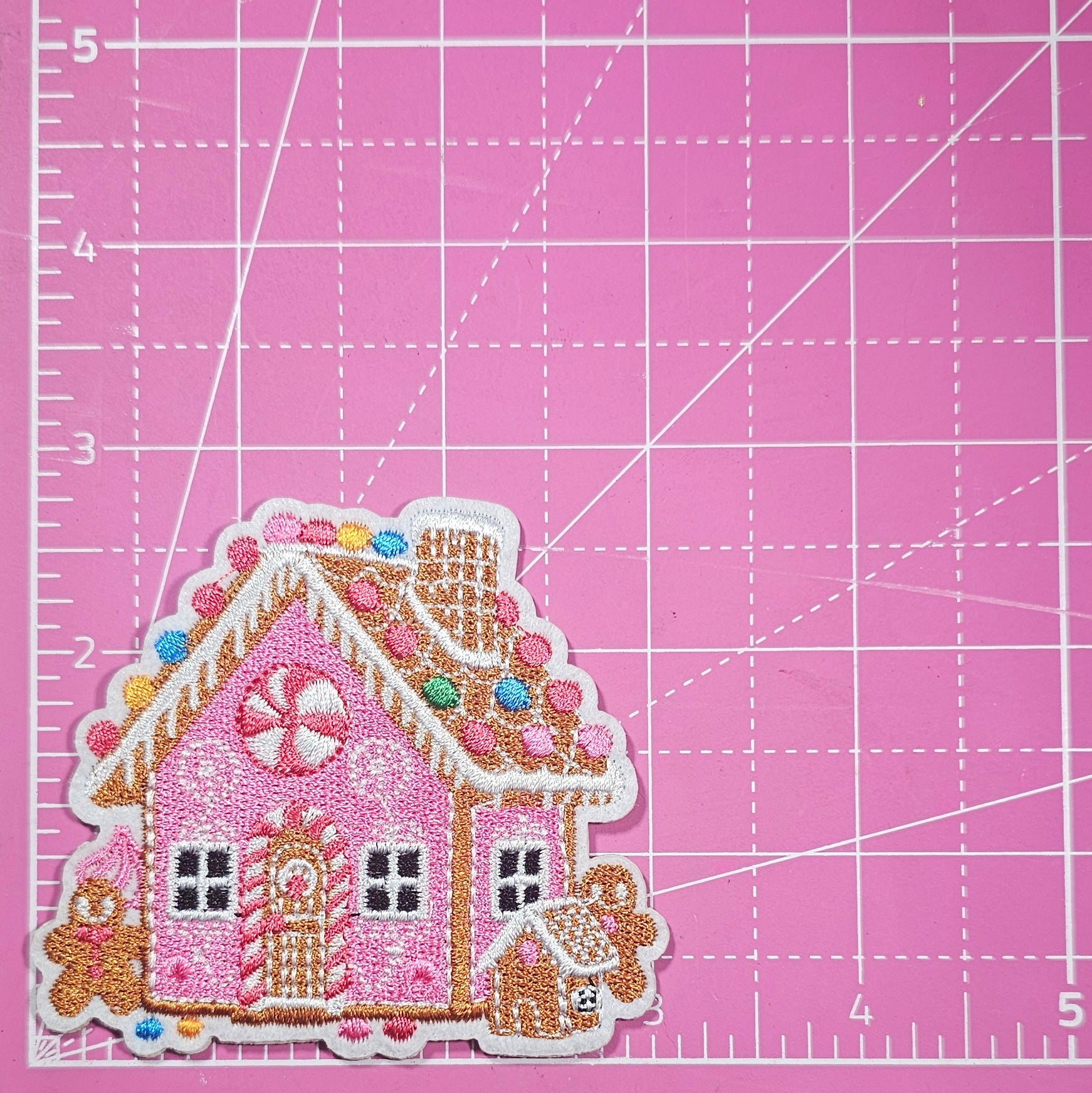 Pink Gingerbread Candy House Embroidery Iron On Patch