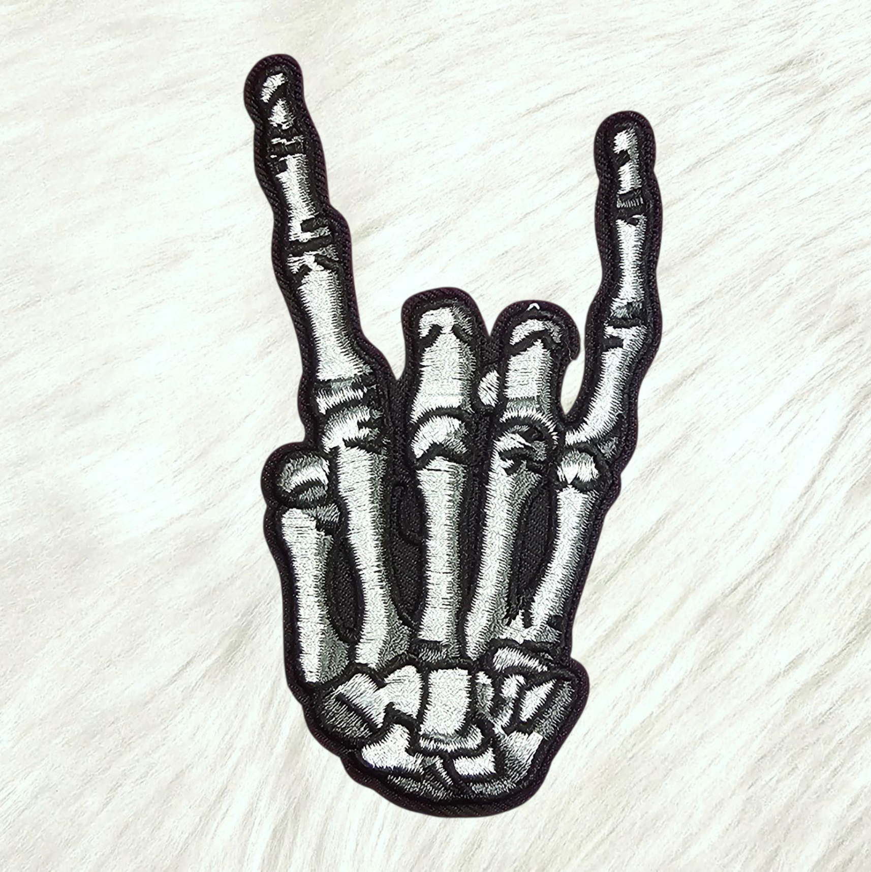 Skeleton Hand Rock and Roll Punk Embroidery On Patch