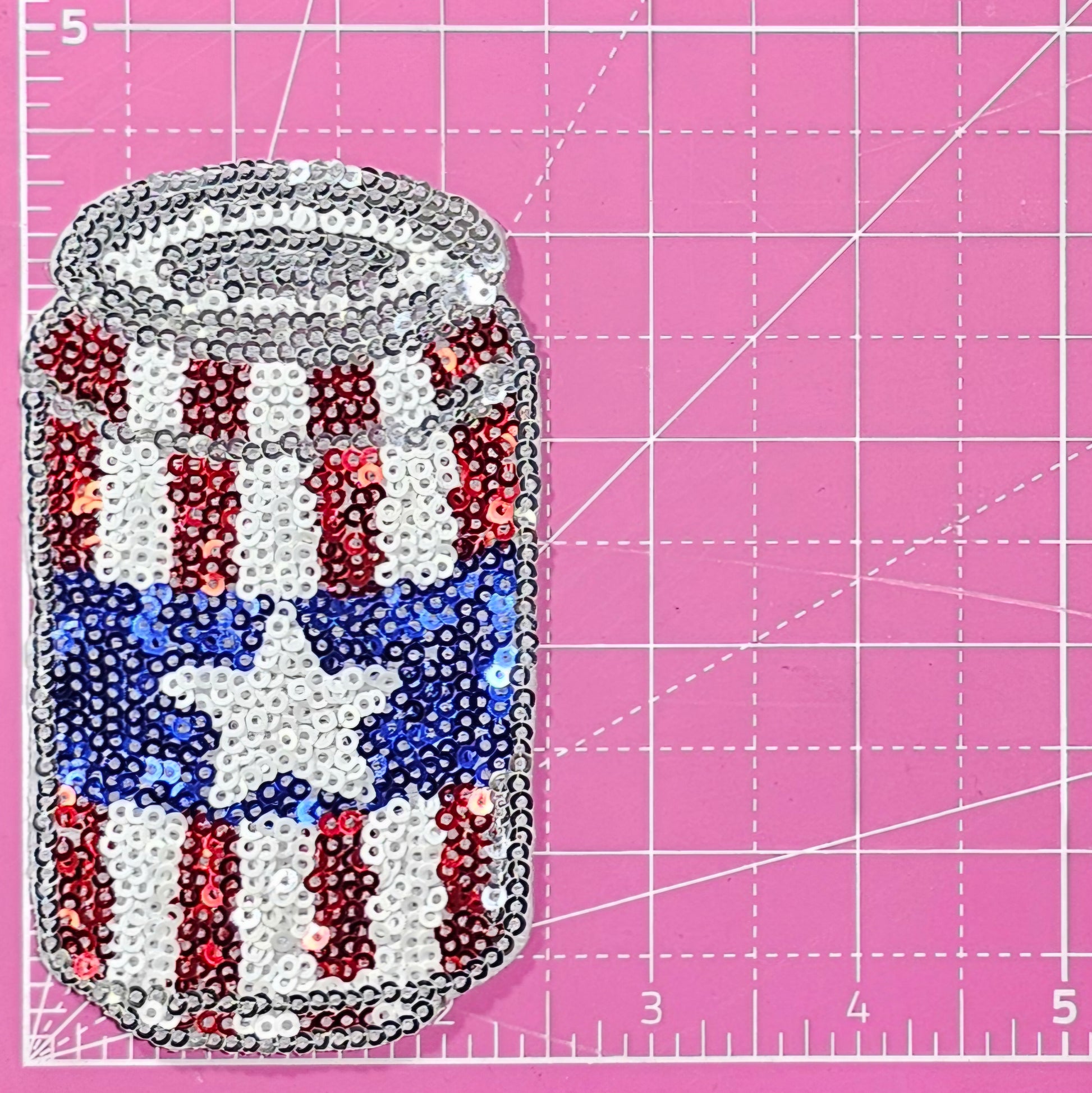 USA American Beer Can Patriotic Sequin Iron On Patch
